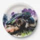 Happy Birthday Monster Truck Smash Crash Boy Kids Paper Party Plates features a watercolor monster truck driving through the dirt. Perfect for children's birthday party celebrations. Designed by Evco Studio. For coordinating items view www.zazzle.com/store/evcostudio