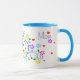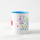 Wish happy birthday to your Mother with style and flair. This cup with the flowing folk-art flowers dotted with cute hearts and a larger "We *heart* you" on the backside is reminiscent of seventies style art and would make the perfect birthday gift. It features a dainty design by ilovecuttables and text that can be customised. Very colourful and pretty to look at and use to enjoy coffee or tea (or any beverage).