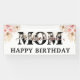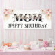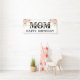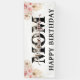 A festive happy birthday party banner for mum, featuring florals and string lights on a white background, and I love you mum in a script font.