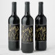 Happy Birthday name personalised cheers gold black Wine Label