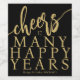 Modern gold typography script cheers to many happy years black birthday party personalised wine label.