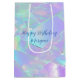 Happy Birthday, Name, Teal & Purple Iridescent Medium Gift Bag
