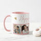 Unique photo collage mug in pink personalised with 5 grandchildren pictures for grandma's birthday. Makes a special keepsake mug for grandmother.