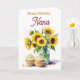 A beautiful personalized birthday card with a pretty watercolor illustration of a vase of sunflowers and lemon cupcakes. Inside is a sweet poem for a Nana.