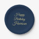 Happy Birthday navy blue gold script custom name elegant party Paper Plates