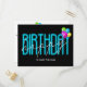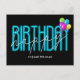 Neon aqua contemporary font on black with colourful party balloons for birthday party