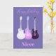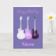 Whether your niece is a guitarist with exceptional skill or an air guitarist this is the card for her. Cool pop art style illustrations of three semi acoustic guitars in slightly translucent off white, pink and purple hues. The words ‘happy birthday niece’ can be customised using the template to create a personalised card for your music loving niece on her special Day. Original artwork created by artist Catherine Sweetman