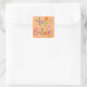 Happy Birthday sticker features hand drawn whimsy art using balloons, a cupcake and birthday cake to help form the letters. Design is on an orange background.