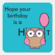 Happy Birthday Owl Pink and Tan Square Sticker
