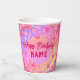 Pink birthday theme paper cups with the person's name and "Happy Birthday!" Design has a special colour effect with various orb dots adding depth, colour and richness to the context. A beautiful design that adds so much charm to your table! Matching accessories sold separately include paper cups and a paper plate with your personal photos. HAMbyWhiteGlove aka HAMbyWG.