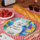 Paper Plates with my mixed media artwork. On front; Happy Birthday!