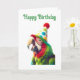 Celebrate that special someone's birthday with this parrot wearing a birthday hat.