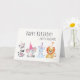 "... party animal" text is optional. Change the text using the template form. The customise feature can be used to change the font and layout of this card!