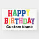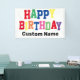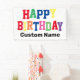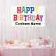 Happy Birthday Party Colourful Personalised Name Banner makes great decor for any age. The background is customisable white. "Happy Birthday" is designed in primary colours of red, blue, yellow, green, purple and pink. Customised with name in black.