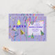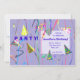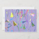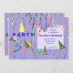 A birthday party invitation with my design of party hats and streamers on a purple background.