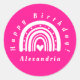 Happy Birthday Personalised Hot Pink Rainbow Classic Round Sticker