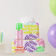 Colourful fun customisable gift wrap personalise with any name and occasion on black or white or design your own.