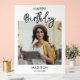 Create your own personalised birthday party decor with a custom photo acrylic sign featuring happy birthday and custom name in black and white colour.