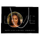 Happy Birthday Photo Love Typography Elegant Black Large Gift Bag