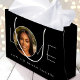 Send love and best wishes on their birthday with a custom photo gift bag! This chic design features a favorite photo integrated into the word "LOVE", complemented by trendy, modern typography and a minimalist aesthetic. You can easily personalize the template with the recipient's name and age, making it ideal for milestone birthdays including 18th, 21st, 30th, 40th, 50th and 60th. This elegant design is also perfect for Valentine's Day, a bridal shower, bachelorette party, holidays, or a special occasion. It adds a unique and thoughtful touch to your gift wrap, and is a lovely choice for a daughter, girlfriend, wife or best friend. Available in either a matte or glossy finish. Printed colors: black and white — or customize the background color with the design tool.