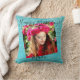 Happy Birthday Photo Rustic Blue Wood Throw Pillow