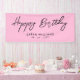 Happy Birthday Pink and Black Modern Script Banner