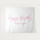 Create your own custom birthday tapestry featuring modern script calligraphy happy birthday and minimal typography name and date design for personalised birthday decor.