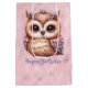 Happy Birthday Pink Brown Owl on Shiny Pink Medium Gift Bag