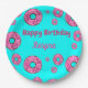 Happy Birthday pink cream doughnuts blue Paper Plate