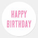 Happy Birthday Pink Girly Custom Colour 2025 Bold Classic Round Sticker