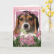 Happy Birthday - Pink Tulips - Beagle Puppy Card