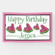 Happy Birthday Pink Watermelon Slice Fruit Picnic Banner