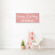 Happy Birthday Pink White Whimsical Script Banner