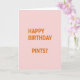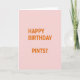 This card keeps things simple with no characters or scenery, letting the message do all the talking. A pale pink background sets a gentle, friendly tone that can read as sweet between close friends or a couple planning a low-key night out 💚. Centered on the front, the all-caps text reads “HAPPY BIRTHDAY PINTS?” in a strong sans-serif style, making it feel like a direct, cheeky invite. The letters are a bright orange that stands out sharply against the soft pink, like a warm toast raised across the table. That question mark adds a flirty nudge, as if one person is leaning in with a grin and the other is already saying yes. There’s no shading or texture, just even, flat color that keeps your eyes on the words and their easygoing tone ☘️. The orange headline sits neatly in the middle of the pale pink field, with generous empty space all around it.