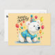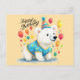 Happy Birthday Polar Bear Balloons Party Art Postcard
