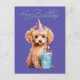 Happy Birthday Poodle with Party Hat & Bday Cake Postcard