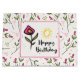 A gift bag with a square frame with a pink border which says "Happy Birthday" written in a trendy font with a yellow sun above and a pretty pink flower. The backdrop is a seamless pattern with hand drawn pink wildflowers with long green stems and leaves on a eggshell white coloured background. Pink circles and sprigs also decorate the design. Cute and summery design.