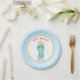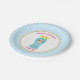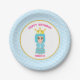 Happy Birthday princess paper plate with a lovely little girl on white and turquoise with wavy pattern. Text and number can be personalised.
