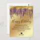 happy birthday purple gold dripping glitters metallic Postcard