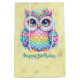 Happy Birthday Rainbow Colour Owl on Shiny Lemon Medium Gift Bag