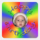 Happy Birthday photo stickers in rainbow colours. Add your own photo.