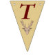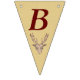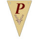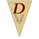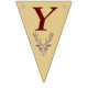 This flag shaped bunting Happy Birthday banner is a light tan colour with deep red letters and a red outlined brown trophy deer head with large antlers on each flag. Customise the birthday year with the templates.