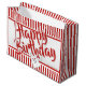 Happy Birthday Red/White Simple Stripes Pattern Large Gift Bag