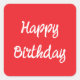 Happy Birthday Red White Trendy Custom Colour Square Sticker