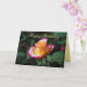 A beautiful peppermint striped rose adorns this card on the front and a lovely red rose graces the back of this card.