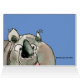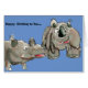 Two funny cute cartoon rhinos say "Happy Birthday to You... You belong in a zoo, Hoof a great birthday" and side small text "Because you are wild" (you can edit all text)