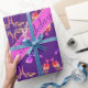 "Happy Birthday" Rose Hearts on Purple Wrapping Paper