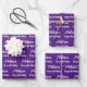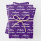Happy Birthday Royal Purple and White Name Pattern Wrapping Paper Sheet