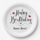 Add a touch of charm to your celebration with these personalised paper plates featuring elegant black Happy Birthday script and tiny heart accents. Customisable with a name, they're perfect for birthday parties, dessert tables, or themed events.