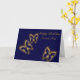 Dramatic blue and gold wishes for a special day, butterflies in gold. Editable